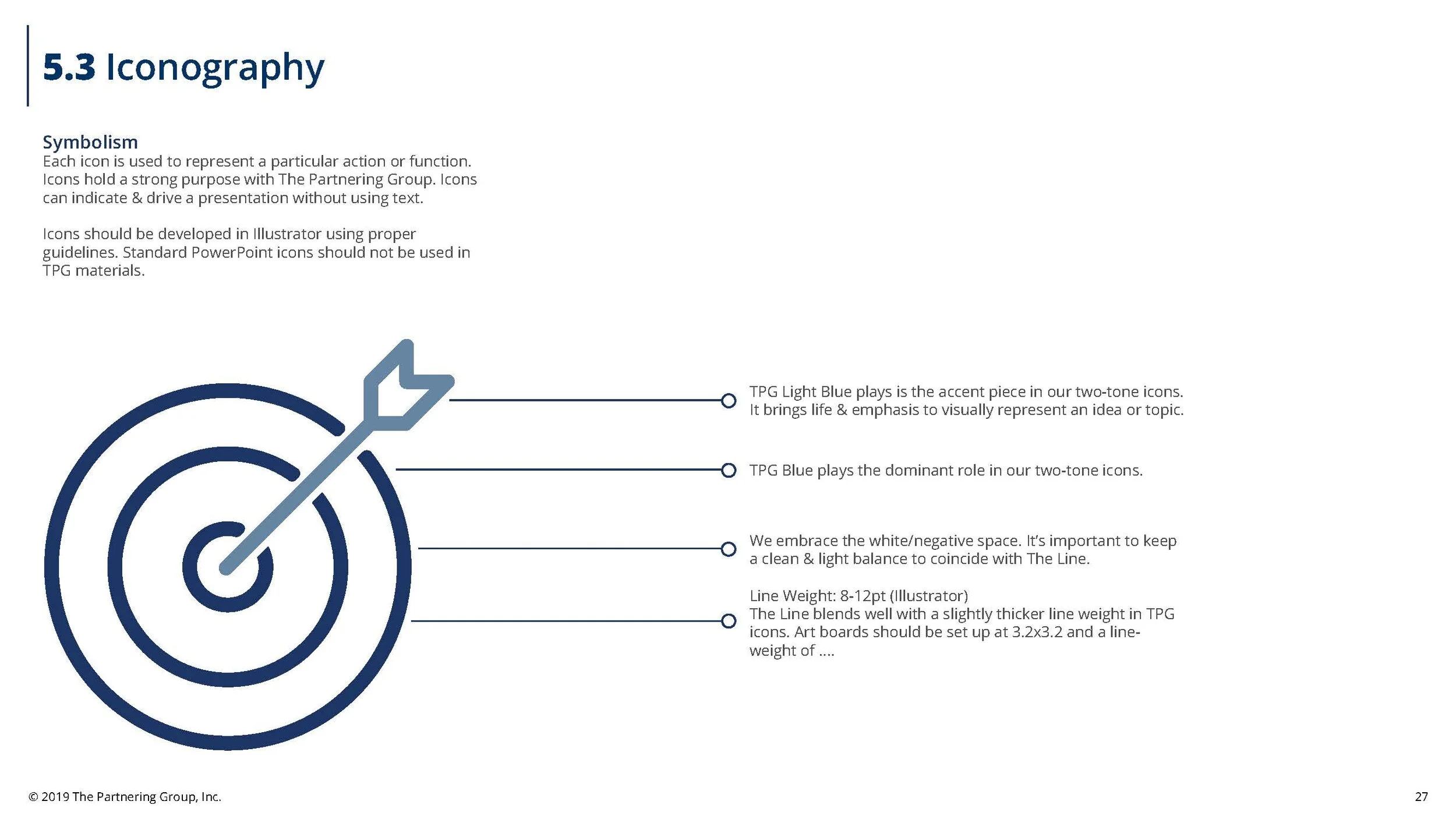 In 2019, my team an I collaborate on creating a new brand style guide for The Partnering Group. TPG is a global strategy and general management growth consultancy that helps companies evolve, innovate and grow in this fast-paced technology driven ecosystem. TPG partners have been executive leaders as many of the world’s most respected retail and consumer products companies. The look and feel for The Partnering Group’s style guide had to be clean, professional, but also visually engaging.